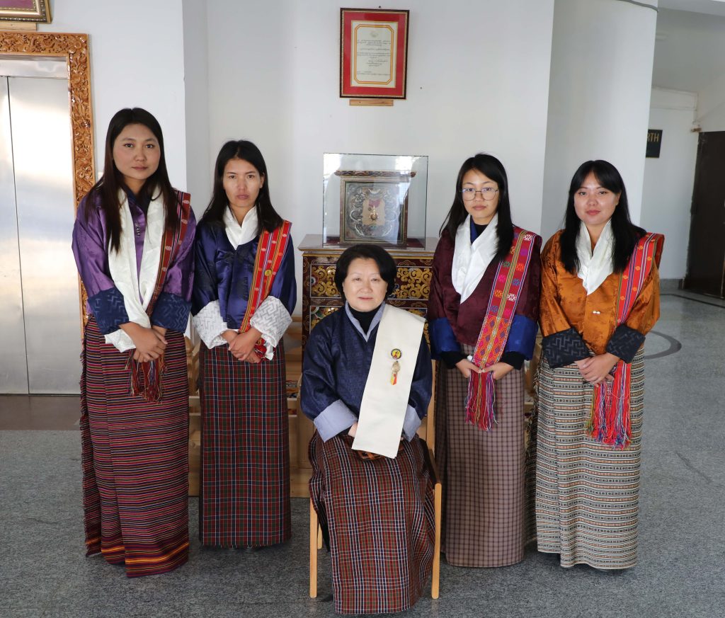 The Election Commission of Bhutan (ECB) warmly welcomed back the officials who had completed three-month Pelsung Immersion Programme at Gelephu Mindfulness City (GMC) in a session graced by the Hon’ble Chief Election Commissioner. The event was organized to honour Miss Dechen Seldon, Miss Sonam Choden, Miss Ugyen Wangmo, and Miss Yeshi Dema.
