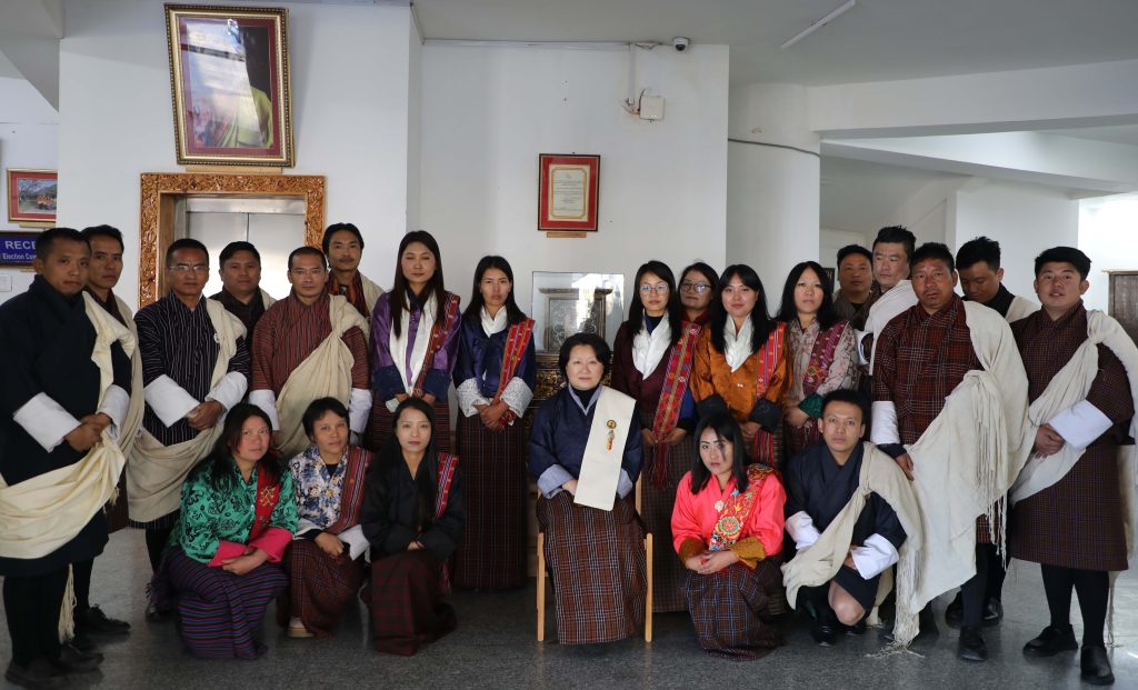 The Hon’ble Chief Election Commissioner congratulated the four officers on their successful completion of the programme and presented them with Tashi Khadar, as a gesture of appreciation. The Dasho CEC also encouraged the participants and other officials at the head office to volunteer for similar programmes in future, emphasizing that the programmes initiated under the visionary leadership of His Majesty The King aim for building the future of Bhutan.